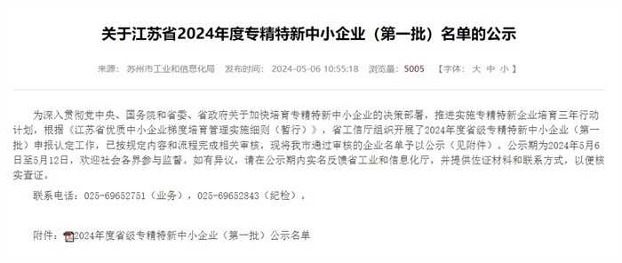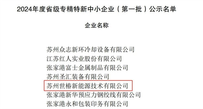 喜报!热烈祝贺苏州世椿新能源通过2024江苏省“专精特新”中小企业认定!